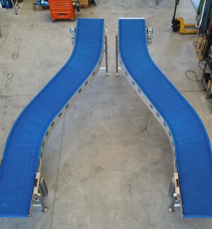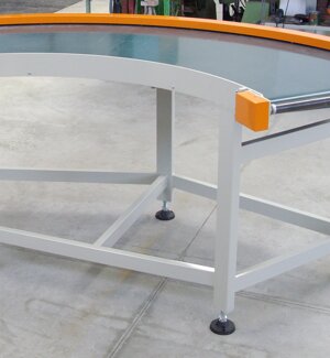 Siamo specializzati nella progettazione e realizzazione di curve a nastro a rulli conici particolarmente adatte al trasporto di materiale pesante e ingombrante.