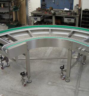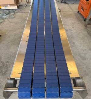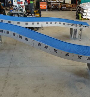 Realizziamo trasportatori modulari table top o nastro tipo intralox e nastri allargatori.